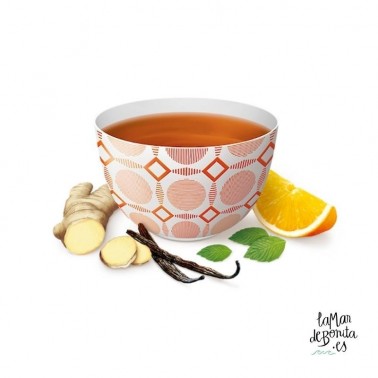La mezcla de hierbas contiene el toque picante y afrutado del jengibre como primer ingrediente, acompañado del regaliz, la parte ácida de la cáscara de naranja, y hierba limón. Sin olvidar del toque refrescante de la menta, la pincelada dulce de la vainilla, y el giro especiado de la pimienta negra.