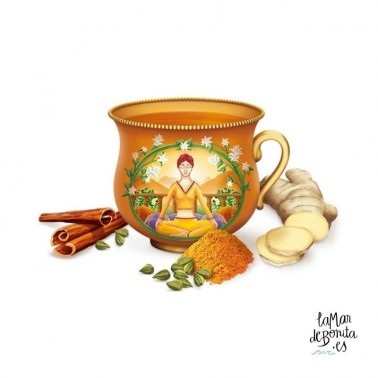 Esta mágica infusión ayurvédica cuenta con una combinación de ingredientes que te ayudará a disfrutar de un maravilloso momento. Su ingrediente principal es la cúrcuma que viene acompañada del toque dulce y especiado de la canela, el picante del jengibre, clavo y pimienta negra y la vuelta afrutada que aporta la manzana.