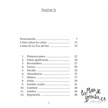 Esta original baraja y su manual están amorosamente diseñados para que puedas encontrar respuestas en tu vida, hacer introspección y guiar tus pasos hacia el amor. * Sus mensajes, te servirán de apoyo e inspiración en tu trayectoria vital. * Su uso diario te ayudará a tomar conciencia de los pensamientos inconscientes que crean tu realidad y tus circunstancias actuales. Esta obra ha contado con la colaboración de diversos ilustradores de: España: Álvaro Rodríguez, Nana Garzón: México: Raúl Valdés: Costa Rica: Tamara Rojas, Sara Díaz: Perú: Abel Torres: Italia: Federico Tognoli: Chile: Macarena Salazar y Colombia: Javier Salas.