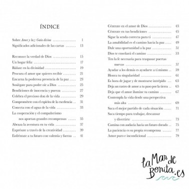 Puedes leer el libro día a día como un devocionario inspirador, o bien sacar una carta al azar para reflexionar sobre un tema de contemplación espiritual. Cada carta contiene una imagen evocadora, una bendición devocional y un versículo de las escrituras que te ayudarán a conectar con la magnificencia de Dios, la abundancia de la creación y tu niño interior.