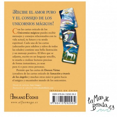 ¡Recibe el amor puro y el consejo de los unicornios mágicos! Con las cartas oráculo de los Unicornios mágicos puedes recibir mensajes y consejos relacionados con tu vida actual, tu futuro y tu senda espiritual. Cada una de las cartas (adecuadas para adultos y niños de todas las edades) contiene una bella ilustración y un mensaje positivo. El libro que se adjunta, escrito en un lenguaje sencillo, te enseña a realizar lecturas precisas de forma instantánea, ya sean para ti o para otras personas. Permite que las cartas de Doreen Virtue (creadora de las cartas oráculo de Sanación a través de los ángeles y muchas otras más) te guíen hacia el mágico y encantador mundo de los unicornios.