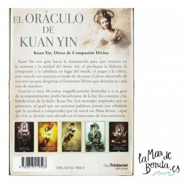 Kuan Yin nos guía hacia la iluminación para que vivamos en la armonía, y la unidad del Amor. Así, al privilegiar la dulzura, la compasión y la sabiduría en lugar del miedo, el juzgar y la cólera, este oráculo nos muestra el modo de alcanzar el pleno desarrollo de nuestro ser para despertar el Femenino Divino que dormita en cada uno de nosotros.