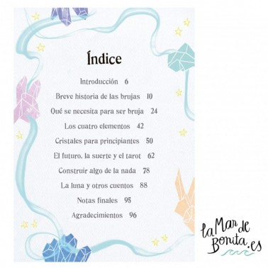 Con esta pequeña guía aprenderás los fundamentos básicos: desde llevar un diario lunar y entender y dominar el uso de los cristales hasta cultivar tu propio «huerto de la bruja» y aprender tarot.