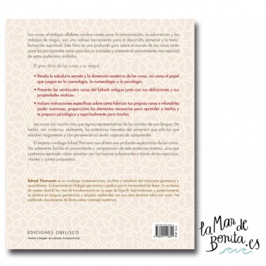 Las runas, el antiguo alfabeto nórdico usado para la comunicación, la adivinación y los trabajos de magia, son una valiosa herramienta para el desarrollo personal y la transformación espiritual. Este libro es una profunda guía sobre el mundo de las runas tanto para los principiantes como para los ya iniciados y presenta el conocimiento más esencial de estos poderosos símbolos. El gran libro de las runas y su magia revela la sabiduría secreta y la dimensión esotérica de las runas, así como el papel que juegan en la cosmología, la numerología y la psicología. Presenta las veinticuatro runas del futhark antiguo junto con sus definiciones y sus propiedades místicas. Incluye instrucciones específicas sobre cómo fabricar tus propias runas e infundirles poder numinoso, proporciona los elementos necesarios para aprender a leerlas y te prepara psicológica y espiritualmente para tirarlas. Las runas son mucho más que signos representativos de los sonidos de una lengua. De hecho, son misterios, realmente, los auténticos 'secretos del universo' que sólo los que estudien largamente y con perseverancia serán capaces de comprender. El experto runólogo Edred Thorsson nos ofrece una profunda exploración de las runas. No solamente facilita el conocimiento y comprensión de este poderoso sistema, sino que podremos aprender cómo conectar con las fuerzas subyacentes a través de los ejercicios, rituales y cantos propuestos.