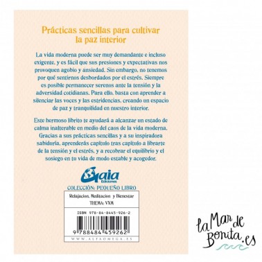 Este hermoso librito te ayudará a alcanzar un estado de calma inalterable en medio del caos de la vida moderna. Gracias a sus prácticas sencillas y a su inspiradora sabiduría, aprenderás capítulo tras capítulo a librarte de la tensión y el estrés, y a recobrar el equilibrio y el sosiego en tu vida de modo estable y acogedor.