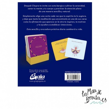 Deepak Chopra te invita con esta baraja a cultivar la serenidad, sanar tu mente y tu cuerpo y practicar la atención plena de una manera sencilla y natural. Simplemente elige una carta cada vez que tu espíritu te lo sugiera, y deja que tanto la meditación que encontrarás en una de sus caras como la afirmación que aparece en la otra te inspiren, te motiven y te ayuden a establecer intenciones.