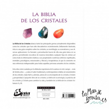 La biblia de los cristales abarca tanto las principales gemas actualmente disponibles como los cristales que han sido descubiertos recientemente. Bellamente ilustrada, ésta es una guía completa sobre los cristales, su morfología, su cromatismo y sus diversas aplicaciones. Su forma y presentación hacen de ella una guía única en su género, permitiendo encontrar de manera inmediata cualquier tipo de cristal, así como toda la información relativa a sus propiedades esotéricas (efectos espirituales, mentales, psicológicos, emocionales y físicos) y terapéuticas, lo que la convierte en una referencia indispensable para todas aquellas personas amantes de los cristales. Esta obra viene avalada por la dilatada experiencia de la autora en este campo -más de treinta años-, y aúna el saber tradicional y contemporáneo relativo al conocimiento de los cristales, Judy Hall es, además, autora de "The Illustrated Guide to Crystals" y "The Crystals User's Handbook".