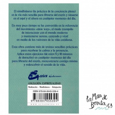 El mindfulness (la práctica de la conciencia plena) es la vía más sencilla para librarse del estrés y situarse en el aquí y en el ahora en cualquier momento del día. En muy poco tiempo se ha convertido en la referencia del movimiento "slow way", el modo tranquilo de interactuar con el mundo moderno y mantenerse sereno, centrado y vital en medio de los vaivenes de la vida cotidiana. Esta obra contiene más de treinta sencillas prácticas para recobrar la calma y la presencia. Aplica estos ejercicios (de entre 5 y 10 minutos de duración) en cualquier momento del día para librarte del estrés, reencontrarte contigo mismo y redescubrir el sentido de la vida.