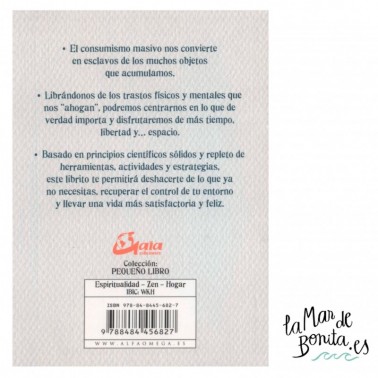 ?El consumismo masivo nos convierte en esclavos de los muchos objetos que acumulamos. ? Librándonos de los trastos físicos y mentales que nos "ahogan", podremos centrarnos en lo que de verdad importa y disfrutaremos de más tiempo, libertad y... espacio. ? Basado en principios científicos sólidos y repleto de herramientas, actividades y estrategias, este librito te permitirá deshacerte de lo que ya no necesitas, recuperar el control de tu entorno y llevar una vida más satisfactoria y feliz.