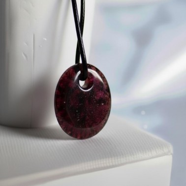 Este modelo viene en forma de caramelo, con un agujero frontal o lateral de 3mm, e incluye un cordón encerado de 1x5mm de grosor, disponible en color negro o marrón, ideal para llevarlo como colgante.