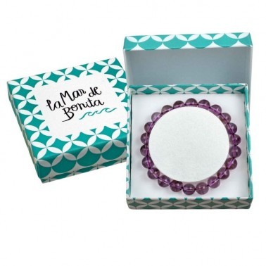En La Mar de Bonita, te ofrecemos esta pulsera de Amatista natural, una pieza delicada y especial, ideal para regalar o autoregalarte. Se presenta en nuestra caja color aguamarina de 8x8 cm con el logo de la marca, perfecta para reutilizar como joyero. La talla única, con un diámetro de 16 a 18 cm, se adapta cómodamente a la mayoría de muñecas, para que puedas llevar contigo una pulsera natural, armonizadora y llena de energía espiritual.