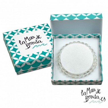 En La Mar de Bonita, hemos preparado esta pulsera de Cristal de Roca natural pensando en ti. Es una pieza delicada y súper especial, ideal para regalar o darte un capricho. Te la entregamos en nuestra caja color aguamarina de 8x8 cm con el logo de la marca, perfecta para reutilizarla como joyero. La talla es única, con un diámetro de 16 a 18 cm, para que se adapte cómodamente a la mayoría de muñecas y puedas llevar contigo una pulsera natural, armonizadora y llena de esa energía pura, amplificadora y equilibrante.