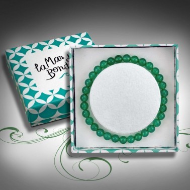 En La Mar de Bonita, hemos preparado esta pulsera de Aventurina Verde natural pensando en ti. Es una pieza delicada y muy especial, ideal para regalar o darte un capricho. Te la entregamos en nuestra caja color aguamarina de 8x8 cm con el logo de la marca, ¡perfecta para reutilizarla como joyero! La talla es única, con un diámetro de 16 a 18 cm, para que se adapte cómodamente a la mayoría de muñecas y puedas llevar contigo una pulsera natural, armonizadora y llena de esa energía de suerte y oportunidad.