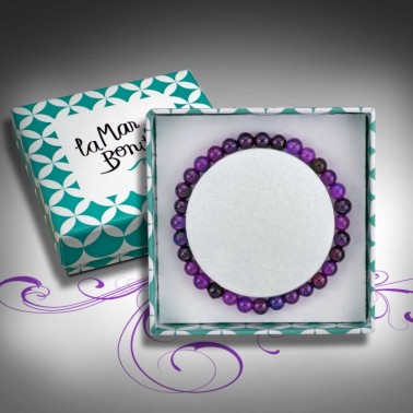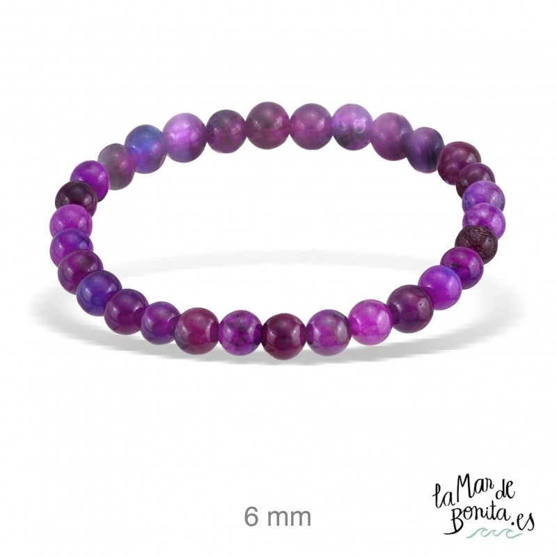 En La Mar de Bonita, hemos preparado esta pulsera de Sugilita natural pensando en ti. Es una pieza delicada y súper especial, ideal para regalar o darte un capricho. Te la entregamos en nuestra caja color aguamarina de 8x8 cm con el logo de la marca, ¡perfecta para reutilizarla como joyero! La talla es única, con un diámetro de 16 a 18 cm, para que se adapte cómodamente a la mayoría de muñecas y puedas llevar contigo una pulsera natural, protectora y llena de esa energía de amor y sabiduría espiritual.