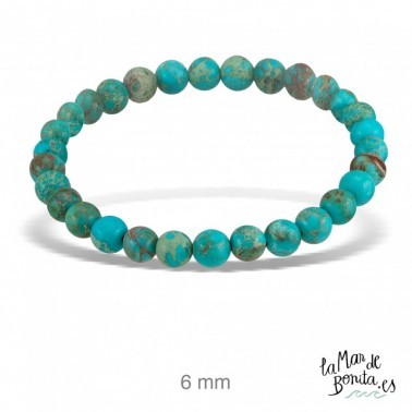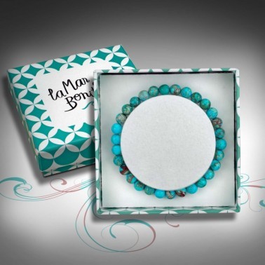 En La Mar de Bonita, hemos preparado esta pulsera de Turquesa natural pensando en ti. Es una pieza delicada y súper especial, ideal para regalar o darte un capricho. Te la entregamos en nuestra caja color aguamarina de 8x8 cm con el logo de la marca, ¡perfecta para reutilizarla como joyero! La talla es única, con un diámetro de 16 a 18 cm, para que se adapte cómodamente a la mayoría de muñecas y puedas llevar contigo una pulsera natural, protectora y llena de esa energía de sabiduría y buena fortuna.