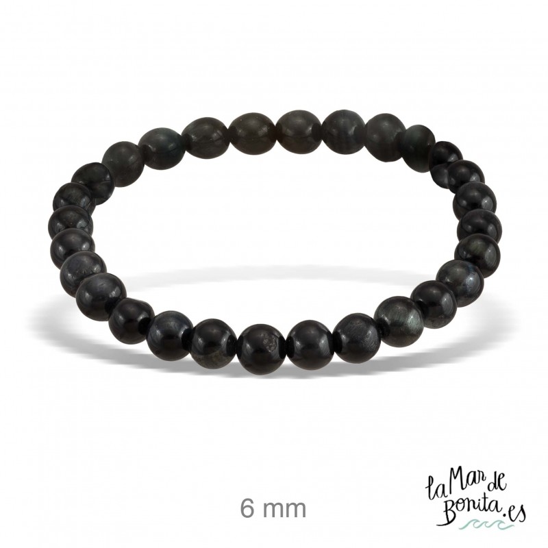 Ojo de Tigre Negro Pulsera bola 6 mm elástica
