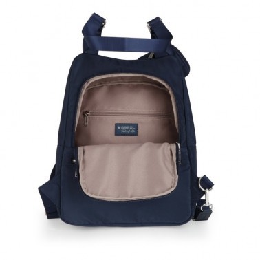 Esta mochila de mujer de la marca Gabol es un complemento pensado para llevar tus pertenencias de valor con su sistema antihurto. multiples cremalleras y departamentos donde organizarlo todo.