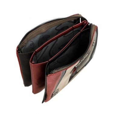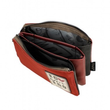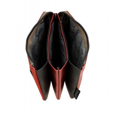 Este monedero con cierre de cremallera tiene 3 compartimentos independientes en su interior, todos forrados. Cuenta, además, con un bolsillo trasero en la parte exterior.