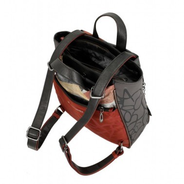 Esta mochila de tamaño medio-grande tiene cierre de cremallera y gran capacidad, con interior forrado y bolsillos, además de otro bolsillo exterior en la parte trasera. Cuenta con dos asas de mochila regulable, más asas agarraderas para la mano.