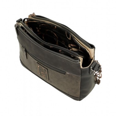 Esta bandolera con cierre de cremallera es de tamaño medio a grande. Cuenta con 3 compartimentos independientes, el interior es forrado y tiene bolsillos, además de otro bolsillo exterior en la parte trasera. El asa bandolera es regulable a diferente largo, ideal para adaptar a mujeres de diferentes alturas.