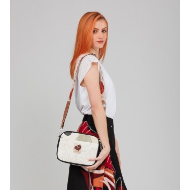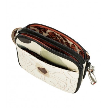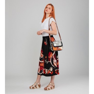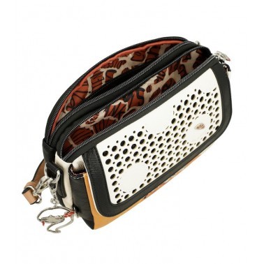 Este original bolso te permitirá usarlo en dos posturas: como un original bolso de mano gracias a sus dos asas de mano, o como bolso de hombro al incorporándole el asa bandolera, regulable a diferente largo. El interior es forrado y cuenta con múltiples bolsillos. Es un bolso con gran capacidad, perfecto para el día a día.
