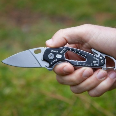 Smartknife es la navaja que se cree una multiherramienta. Con su clip de liberación rápida que hace las veces de abrebotellas. El destornillador plano de gran tamaño facilita la apertura de la hoja con una sola mano. Con una serie de útiles llaves y su cúter incorporado, esta herramienta se convertirá en su compañera más útil.