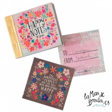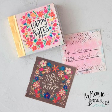 Estas libretas “happy notes” cuentan con un montón de frases y obras de arte con mensajes positivos y optimistas ¡serán tus preferidas! Se trata de hojas perforadas con texto To (para) / From (de) para regalarlas complementando algún regalo o porque te apetece mandarle un mensaje bonito a alguien. Entrégalos como acto de bondad o al azar para alegrarle a alguien el día. Déjalos en el escritorio de trabajo ¡o en el de tus compañeros! Ponlos en la mochila de tus hijos o donde quieras ¡le alegrarás el día a cualquiera! ¡Ayuda a difundir felicidad!