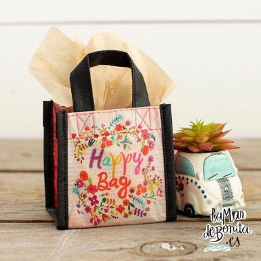 Estas bolsas son nuestras favoritas por muchas razones… ¡están hechas con botellas de agua recicladas! Además, están tejidas de manera que son prácticamente irrompibles, lo que te permitirá usarlas para siempre. Son perfectas para cargar con toneladas de tesoros que sabes que su destinatario amará … ¡Como tapices, mantas, tazas o accesorios! ¡Es muy divertido personalizar y regalar una de nuestras happy bags!