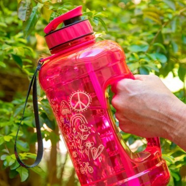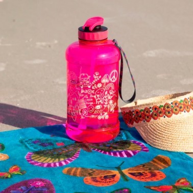Una forma de sentirse La Mar de Bonita es sentirse en forma. Por eso, y de la mano de Natural Life, os traemos esta bonita botella con asa para que lleves el agua que necesites cuando salgas fuera a hacer deporte o simplemente para pasear andando o en bici. De gran capacidad, esta bortella viene en un bonito color rosa y divertidas formas de arco iris, flores, bicicletas, símbolo de la paz, en la linea que nos viene ofreciendo Natural Life: el amor por la vida y la paz.