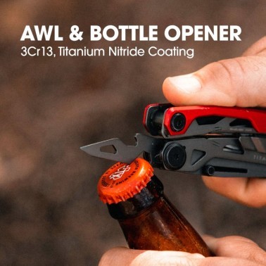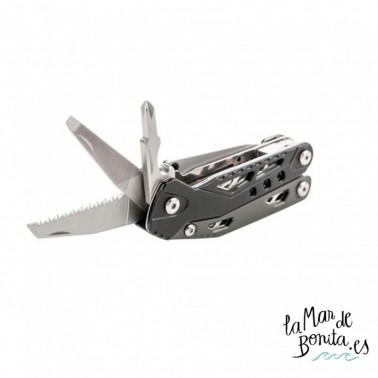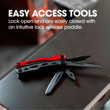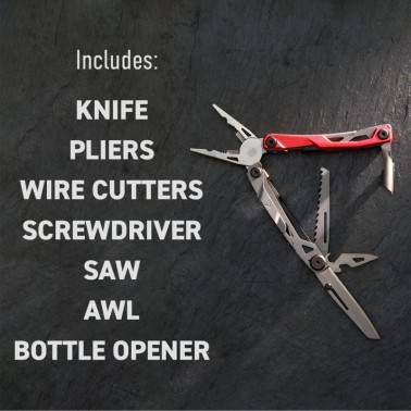 Una multi-herramienta que se centra en la oferta básica de herramientas que los usuarios están más interesados en llevar: cuchillo, alicates, destornillador con una sierra adicional, punzón y abridor de botellas. Nos tomamos el tiempo para crear un conjunto de herramientas que funcionan tan bien como sus homólogos de tamaño completo.