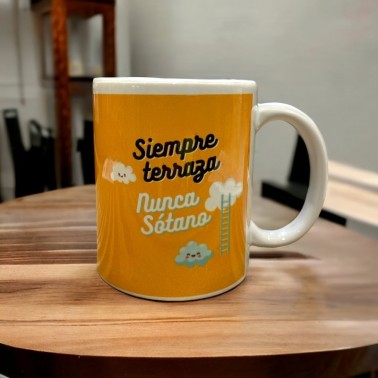 La colección de tazas de la mar de bonita es bonita, pero clara en sus mensajes. Y es que esta taza va de amor propio. Va de que uno debe elegir siempre ir hacia arriba, buscar la luz y el sol. No dejar que las malas decisiones o situaciones te encierren en un sótano mental. Y es que donde se ponga una buena terraza, que se quite el mejor de los sotanos. ¡Disfrutalá, regala esta maravillosa frase, ya sabes a quien!