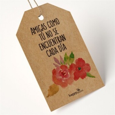 Etiqueta kraft Happymots Amigas como tú no se encuentra cada día