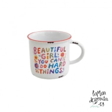 Dos de nuestras cosas favoritas... ¡el camping y las tazas bonitas! Nuestra taza de café para acampar con el mensaje "Beautiful Girl You Can Do Hard Things" (Niña hermosa, puedes hacer cosas difíciles) tiene un aspecto vintage y rústico con sus bordes desgastados. ¡Esta taza de cerámica te recordará los buenos recuerdos que creaste con familiares y amigos! Es ideal para café o té y, como tiene una capacidad de 16 onzas, ¡también es perfecta para sopa o avena por la mañana! Y para un regalo dulce y fácil, ¡solo colócala en cualquiera de nuestras pequeñas bolsas Happy Bags !