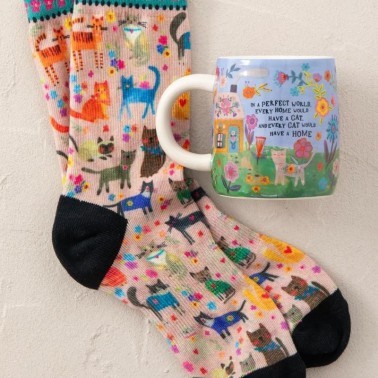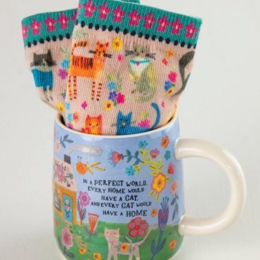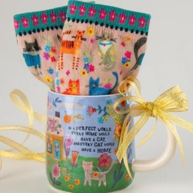 Todos tenemos a alguien loco de los gatos. Pues este regalo está pensado para que todo sea fácil en tu elección. Todos usamos calcetines, y todos bebemos. Así que, juntamos esto con el amor a los animales y en especial a esos seres que tanto nos hacen reir, que..... ¡tienes el regalo perfecto!