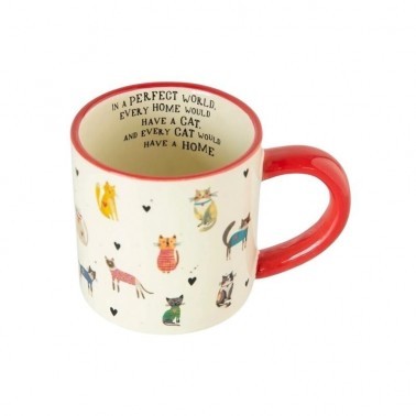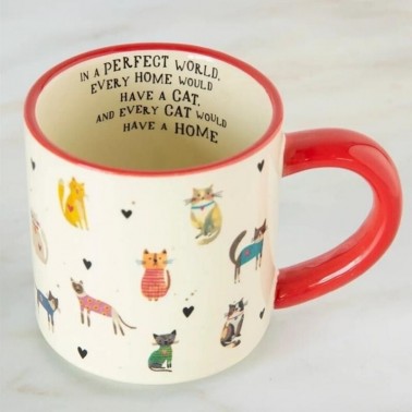 Disfruta de tus bebidas favoritas mientras celebras el amor por los gatos. Con su mensaje y su diseño adorable, esta taza de cerámica es perfecta para los amantes de los felinos y para recordar la importancia de darles un hogar.