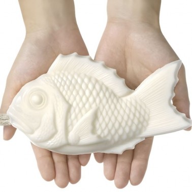 Motivo del Besugo que acompaña a las celebraciones tracicionales japonesas, motivo de la ¨sargo¨ que acompaña las celebraciones para brindar un espíritu divertido y Lúdico. la buena suerte y la prosperidad. Este jabón viene en forma de pez besugo de celebración japonés. Esta delicada forma fue creada mediante un proceso basado en el molde de madera, utilizado tradicionalmente para elaborar el dulce japonés llamado Rakugan.