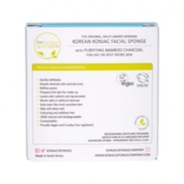Fibra vegetal de konjac y carbón activado de bambú, naturalmente antibacteriano y antifúngico. Rico en minerales, ayuda a absorber toxinas, eliminar exceso de grasa y combatir bacterias, ofreciendo un cuidado profundo para la piel.