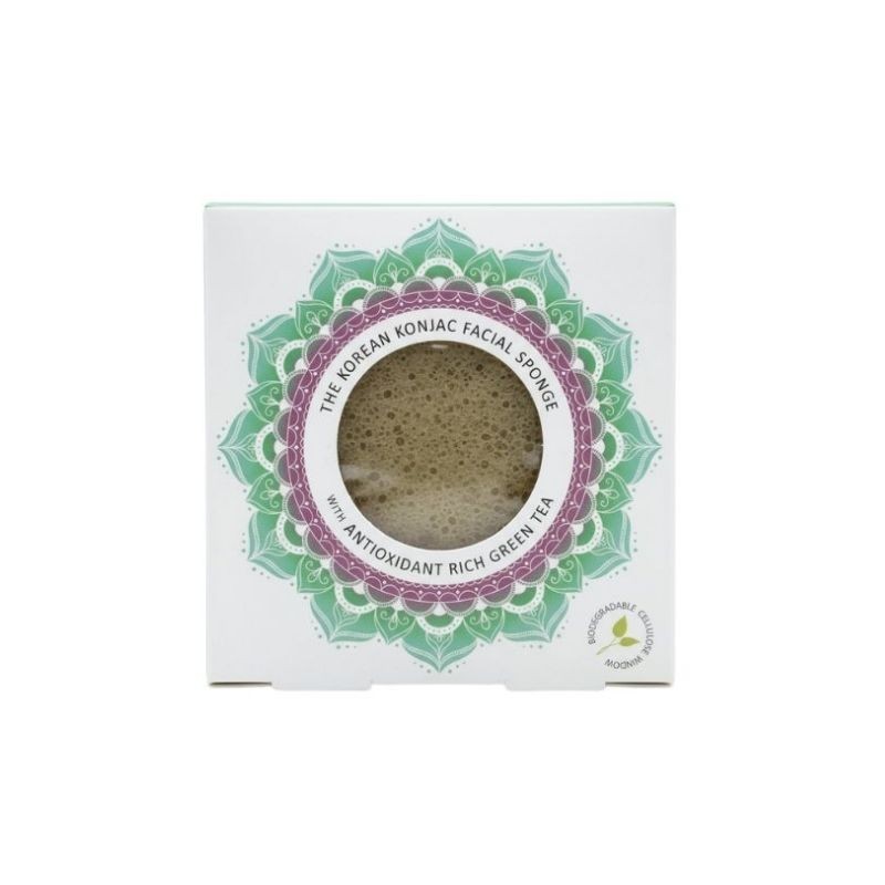 La esponja está elaborada con konjac 100 % natural y enriquecida con té verde, un ingrediente rico en antioxidantes, vitaminas y compuestos antiinflamatorios que ayudan a proteger la piel, mantener un tono saludable, calmar irritaciones y combatir los signos del envejecimiento.