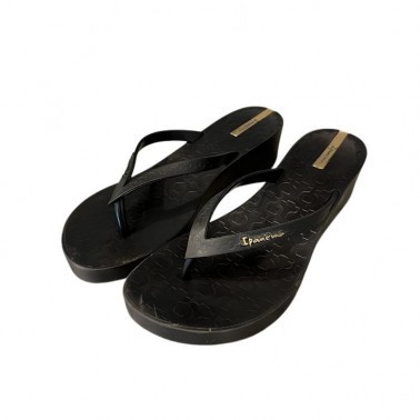 Negras elegantes, con lineas que envuelven tu empeine y el pie para sujetarlo perfectamente y no baile. El logo de marca en color vivo, Ipanema.