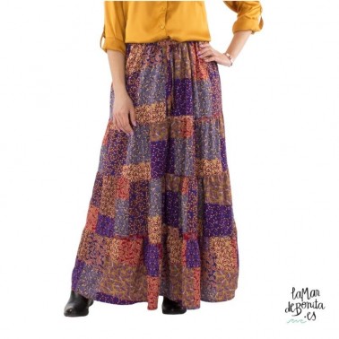 Una falda larga de nujer única, por que tienes un único estampado y un único color Patchwork. es una prenda que te dará un aspecto joven y natural, mostrará tu confianza en un estilo propio, y pondrá color a tu vida, sumandolo al que ya tienes sin duda. La marca Francesa Coline es especialista en este tipo de faldas largas con estilo boho chic o new age.