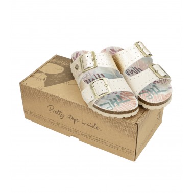 El corcho natural combina con una original combinación en tono nude y un toque en dorado en sus materiales. Además, la hebilla personalizada asegura un ajuste perfecto al pie. Pero lo que las hace únicas es su exclusivo estampado en la base.