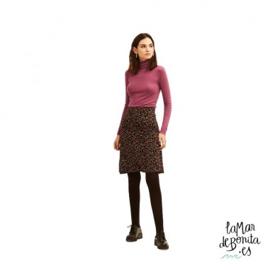 Falda de mujer en 3/4 fabricada en Viscosa 100% cálida y suave, muy agradable de llevar en contacto con tú piel. Lavar y poner, sin necesidad de plancha. Además, con un corte y detalle de bolsilos pinzados dandole una vista graciosa y singular a la prenda. El color negro es un clasico de neustras clientas de fondo de armario, pero esta falda con cuello de chimenea, que puedes remangar y dar la altura que tu quieras, es un clásicazo de nuestras tiendas La Mar de Bonita. Además, nuestra variedad de estampados coloridos y originales para no ser parte de la moda sin sentido, si no más bien para buscar una prenda cómoda, de buena calidad, de lavar y poner, y que combine con toda tu ropa de mujer de uso diario. parece sencillo, y lo es. ¡ Combinala como quieras!