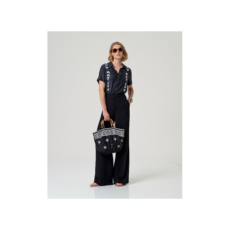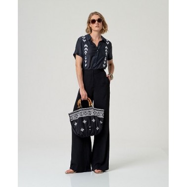 Surkana y La Mar de Bonita te quieren sorprender con este pantalón de fondo de armario. Un Básico en negro con pata de elefante ancho que te dará ese toque que buscas de personalidad.