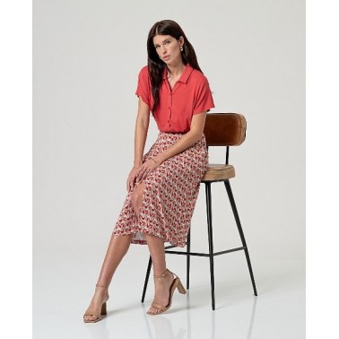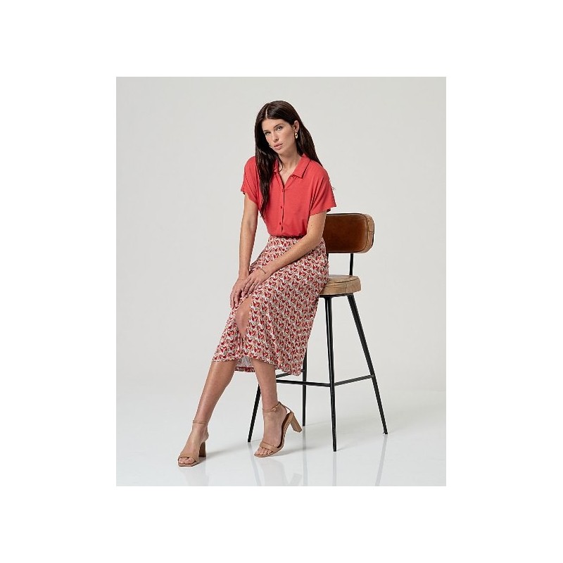 Los vestidos han cambiado la tendencia, la gente ahora prefiere comprar dos piezas como esta falda y la camiseta, que juntos crean un conjunto perfecto como un vestido, pero te otorgan el placer de poder jugar con un sin fin de prendas de arriba o abajo. Lisas o estampadas, del estampado 95_multi o de un liso 01_blanco de Surkana.